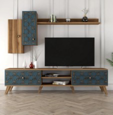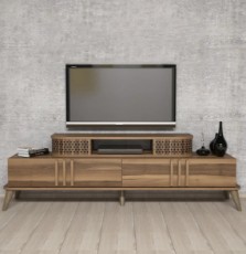 Comodă TV Trendy Ekol Cream/Walnut/Black 140x45x40cm GTR000097