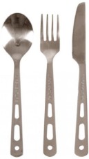Materialul de fabricație. Alegeți seturi de tacâmuri turistice din oțel inoxidabil sau titan — sunt rezistente la coroziune și durabile. Aliajele ușoare de aluminiu sunt ideale pentru drumeții lungi, deoarece reduc greutatea totală a rucsacului. Mânerele din plastic sunt mai confortabile în utilizare și nu se încălzesc atunci când sunt în contact cu mâncare fierbinte.