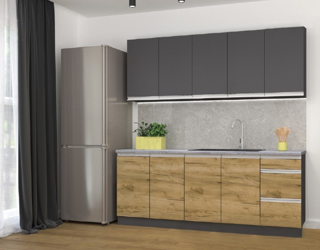 Bucătărie Yasen Madera 2.0m Grafit Gri/Stejar Craft Aur (dreapta)