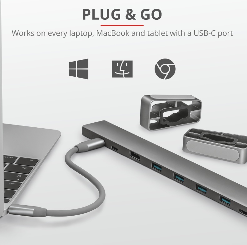 Multiplicator Trust Dalyx Aluminium 10-in-1 USB-C Multi-Port Docking Station (23417)