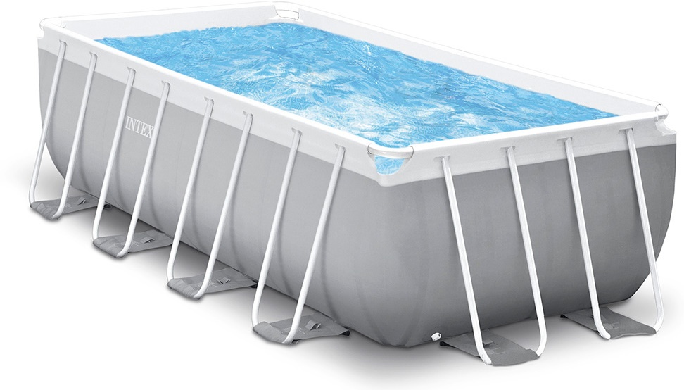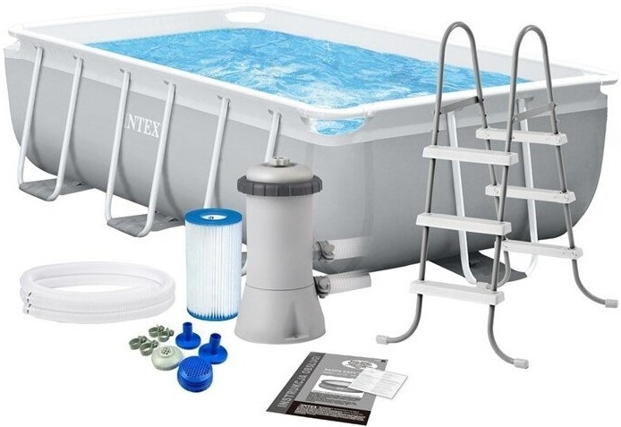 Bazin cu cadru prefabricate din seria Intex Prism Frame de formă dreptunghiulară în set complet DELUXE cu o pompă de filtrare, o scară.