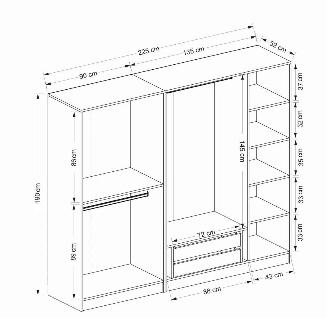 Dulap Trendy Kale 3110 White/Walnut 225x190x52cm GTR004263