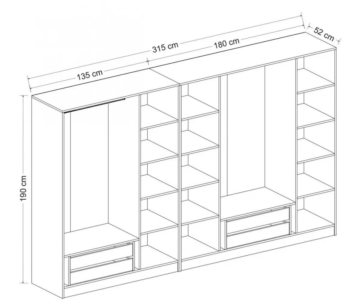 Specificații Dulap Trendy Kale 3114 White/Walnut 315x190x52cm GTR004267