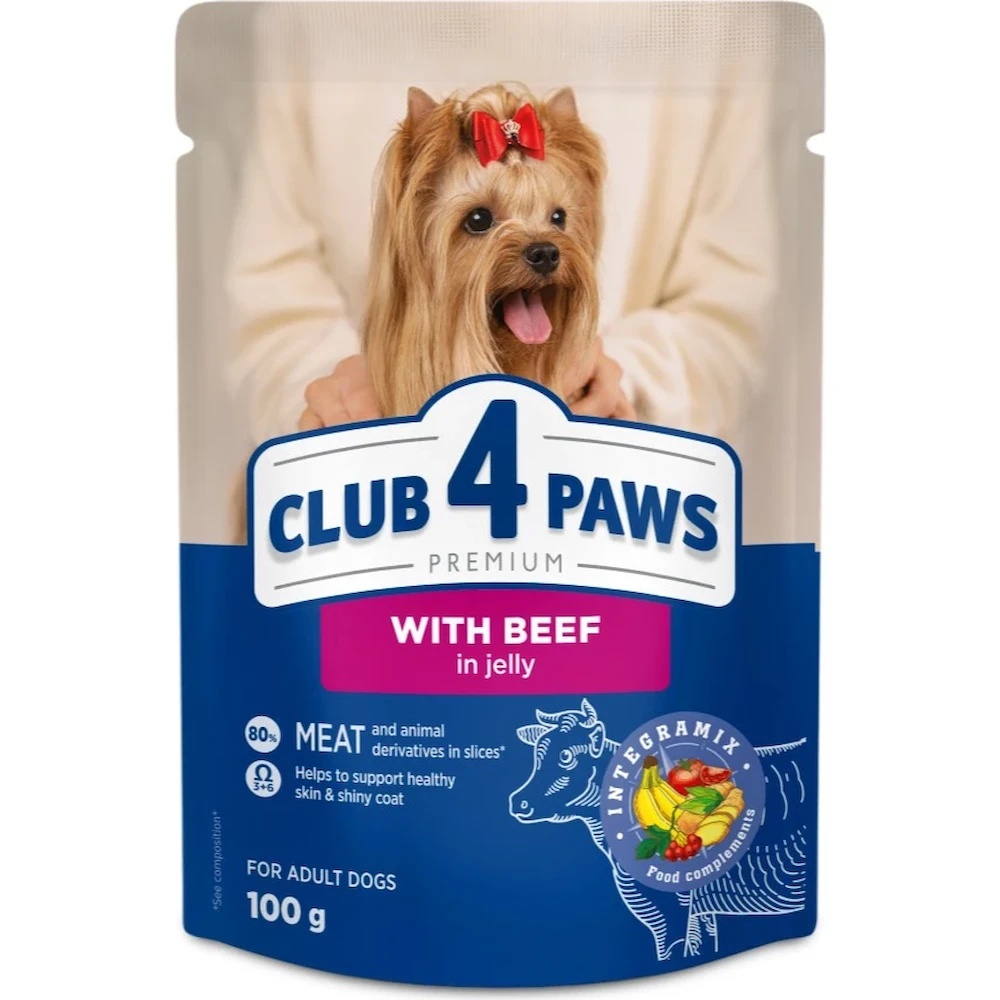 Hrană umedă pentru câini Club 4 Paws Adult Dog with Beef in Jelly 100g