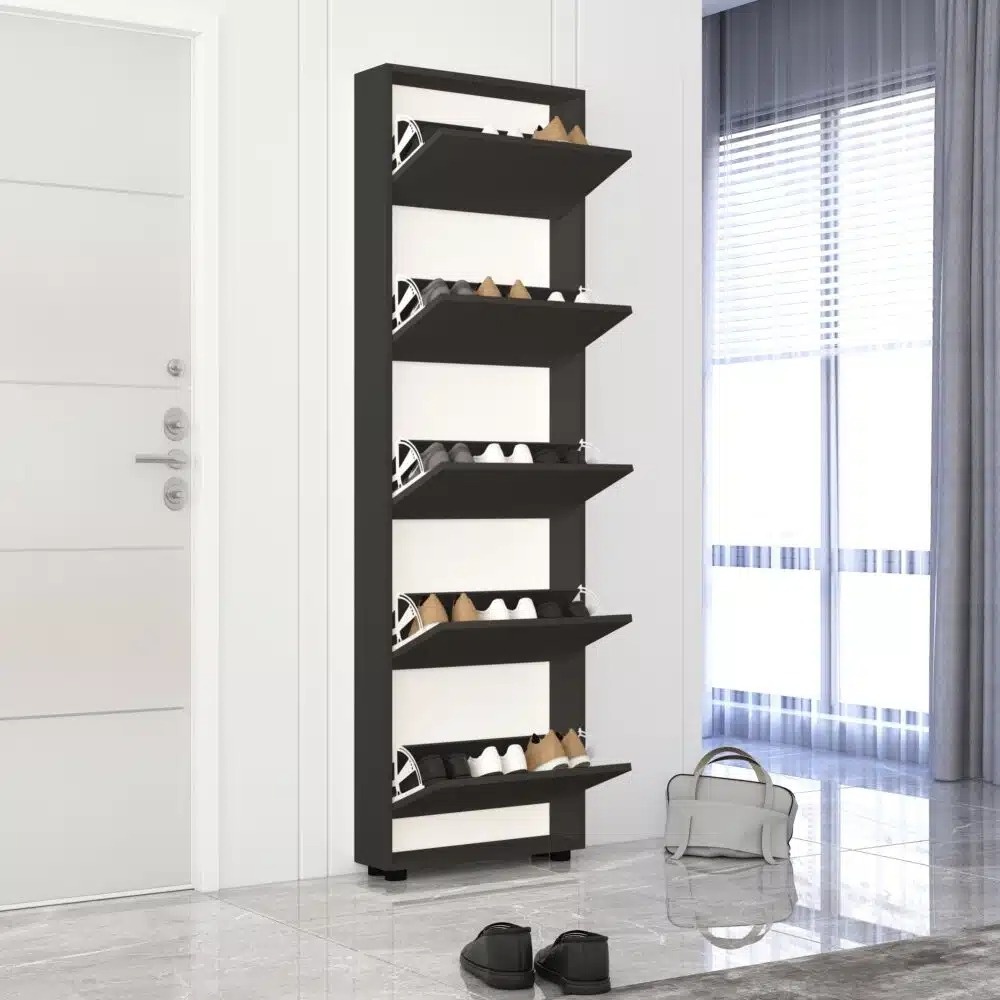 Rafturi pentru pantofi Mobildor-Lux Leo Slim 50x16x203 Anthracite/Oak Sonoma (00013565)