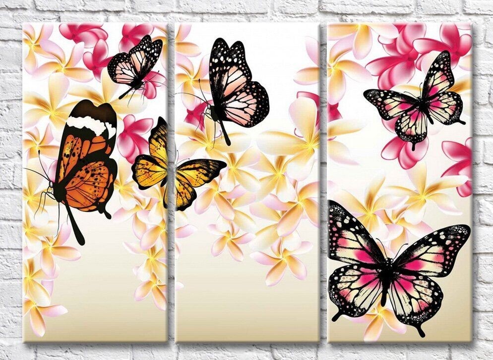 Pictură ArtPoster Butterflies on a background of plumeria flowers (3565112)
