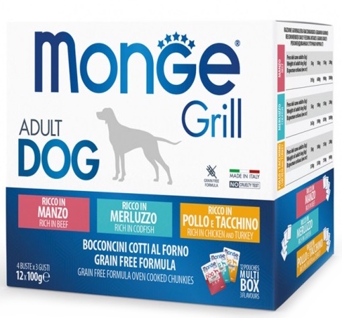 Hrană umedă pentru câini Monge Superpremium Adult Grill Mix Beef/Cod/Chicken 12x100g