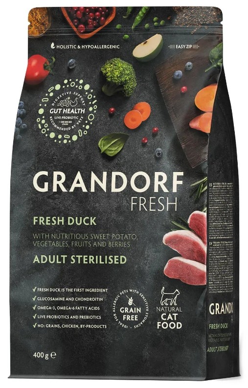 Hrană uscată pentru pisici Grandorf Fresh Adult Sterilised Duck & Sweet Potato 400g