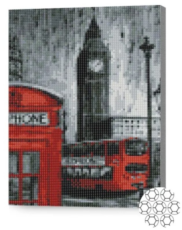 Pictura cu diamante după numere Art Gallery Premium Accente roșii în Londra sură 30x40cm (XQB80521)