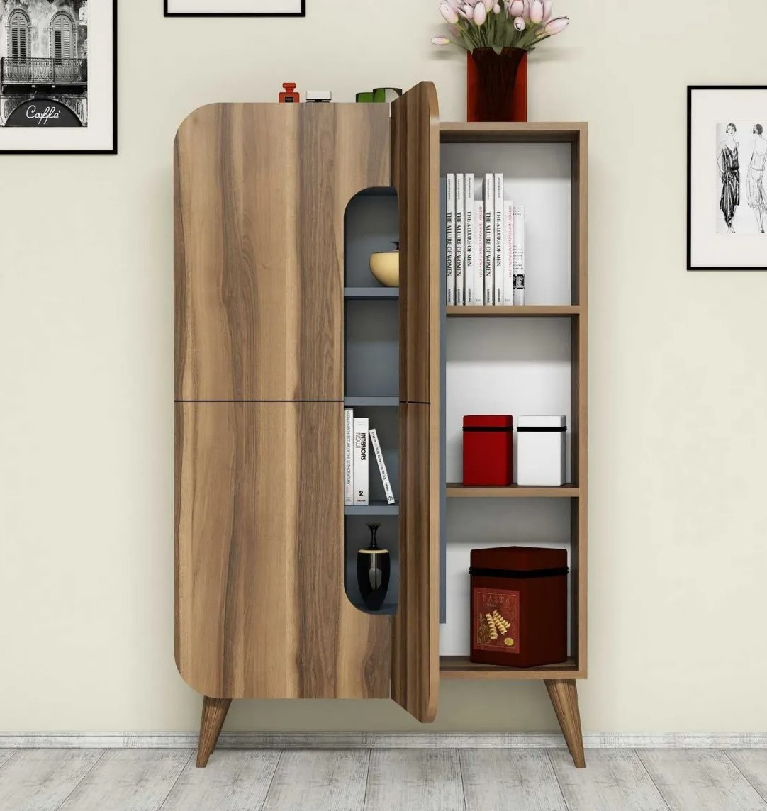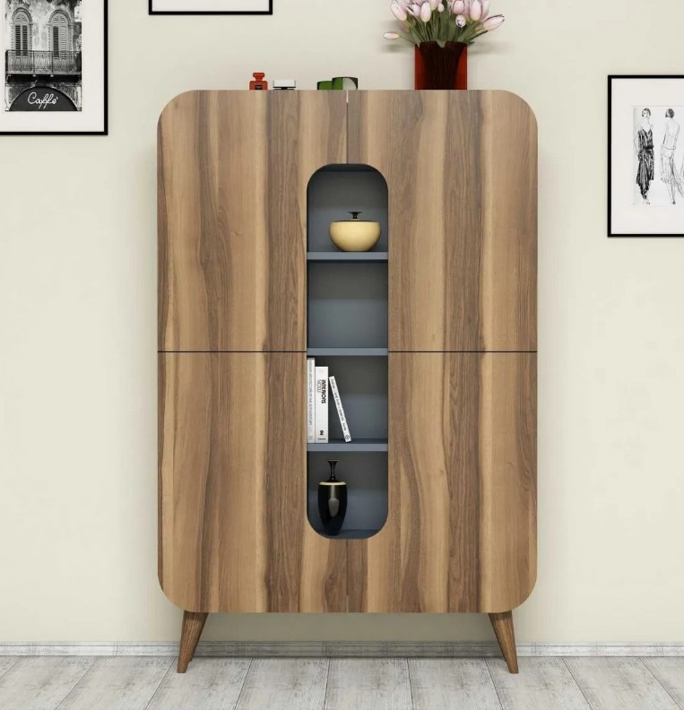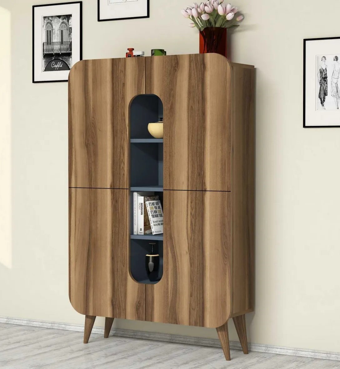 Comodaul are o combinatie uimitoare de culori de nuc si albastru, adaugand o nota de rafinament interiorului dvs. Nuantele contrastante creeaza un aspect vizual atragator, care cu siguranta va va impresiona oaspetii.