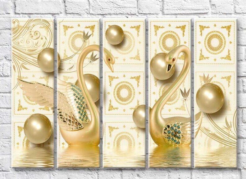 Pictură Rainbow Jewelry swans and pearls on a beige background (3551885)