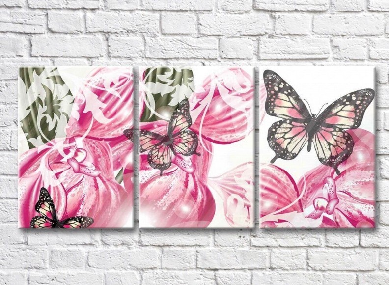 Pictură ArtPoster Butterflies on a background of Pink orchid petals (3565217)
