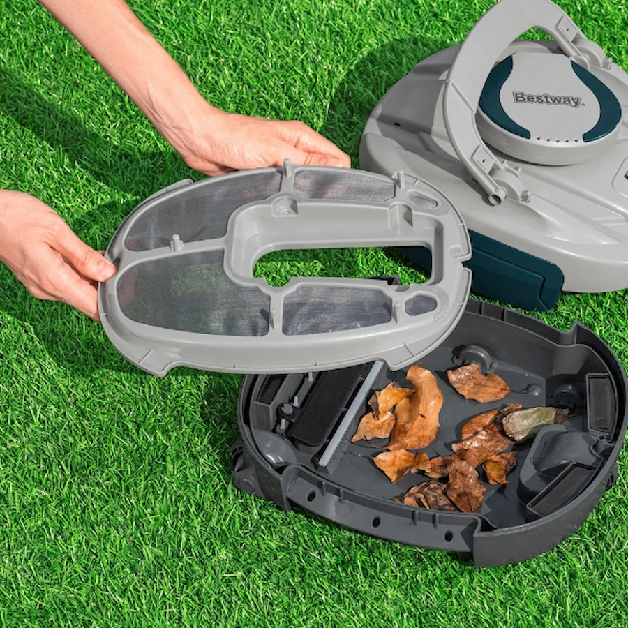 Cu o baterie reîncărcabilă integrată, dispozitivul oferă până la aproximativ o oră de funcționare continuă, fiind ideal pentru piscine supraterane de dimensiuni mici și medii.