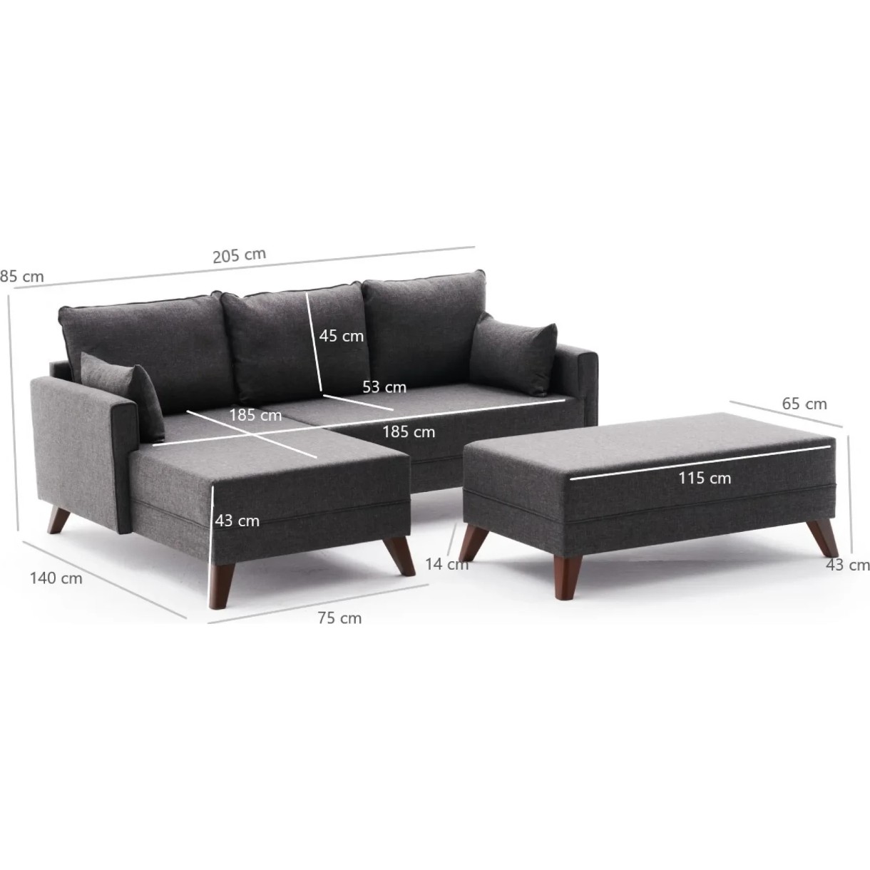 Canapea de colț Trendy Bella Anthracit L 205x140x85cm GTR003352