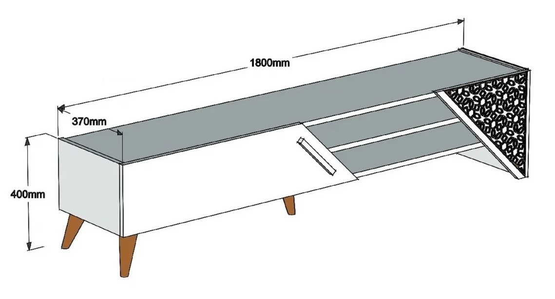 Fabricată din panouri de particule acoperite cu 100% melamină, unitatea TV este construită pentru a rezista, asigurând durabilitate și longevitate. Grosimea de 18 mm garantează robustețea, oferind o platformă stabilă pentru televizor și alte dispozitive de divertisment.
