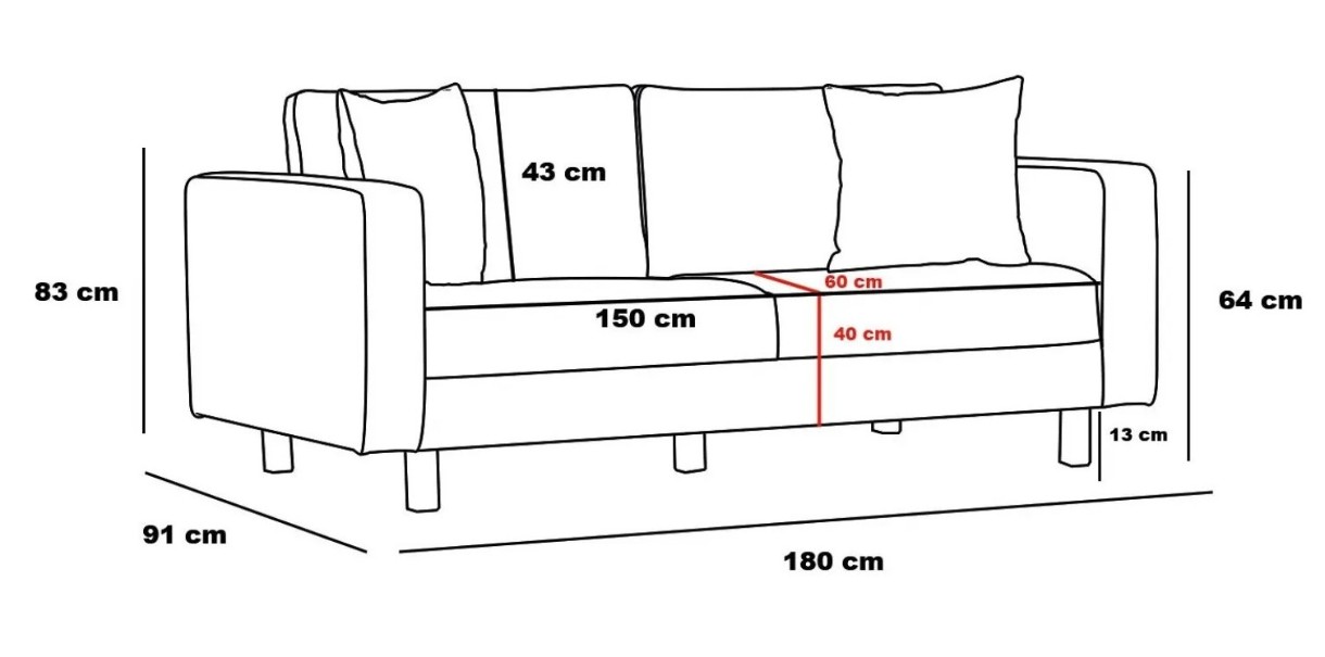 Dimensiunea canapelei (l×L×Î)180x91x83 cm