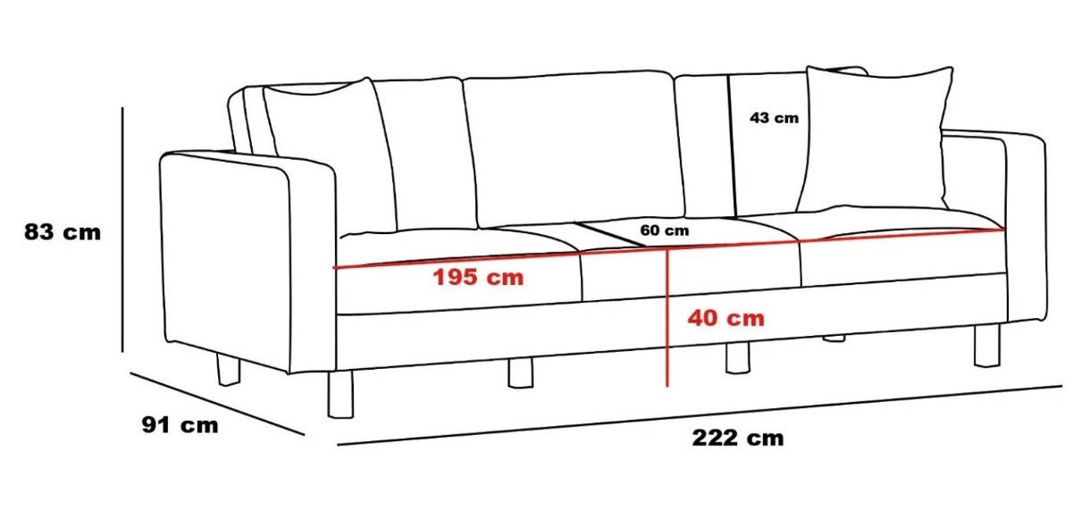 Dimensiunea canapelei (l×L×Î)220x91x83 cm