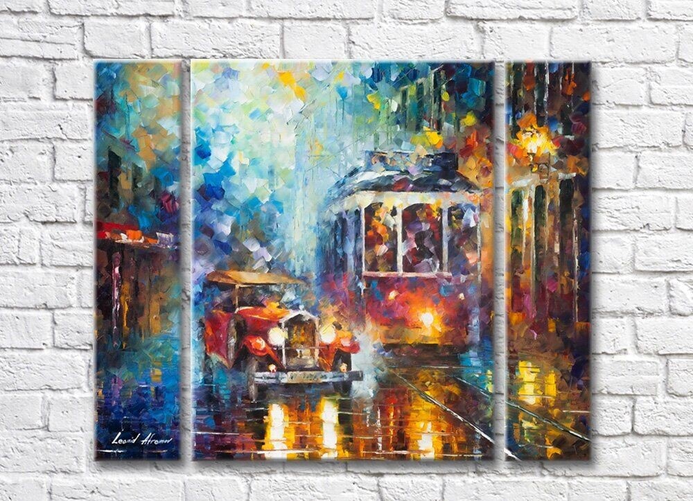 Pictură Gallerix Retro car and tram on the city street (35110207)