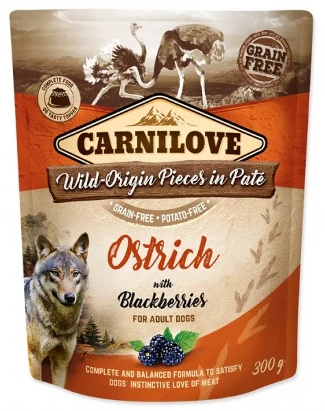 Hrană umedă pentru câini Carnilove Ostrich with Blackberries 300g