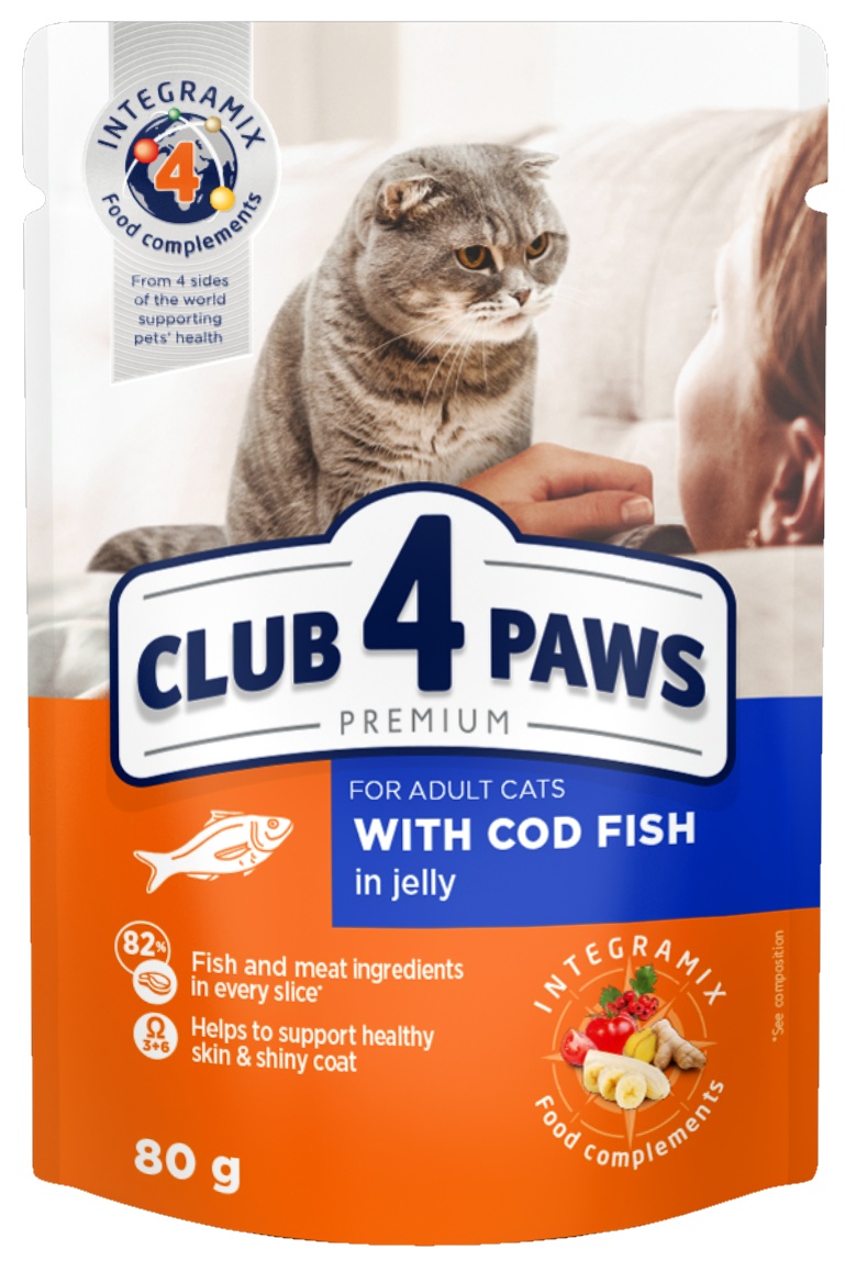 Hrană umedă pentru pisici Club 4 Paws Adult Cats with Cod Fish in Jelly 0.08kg 24pcs imaginea #1 — magazin online Desire.md