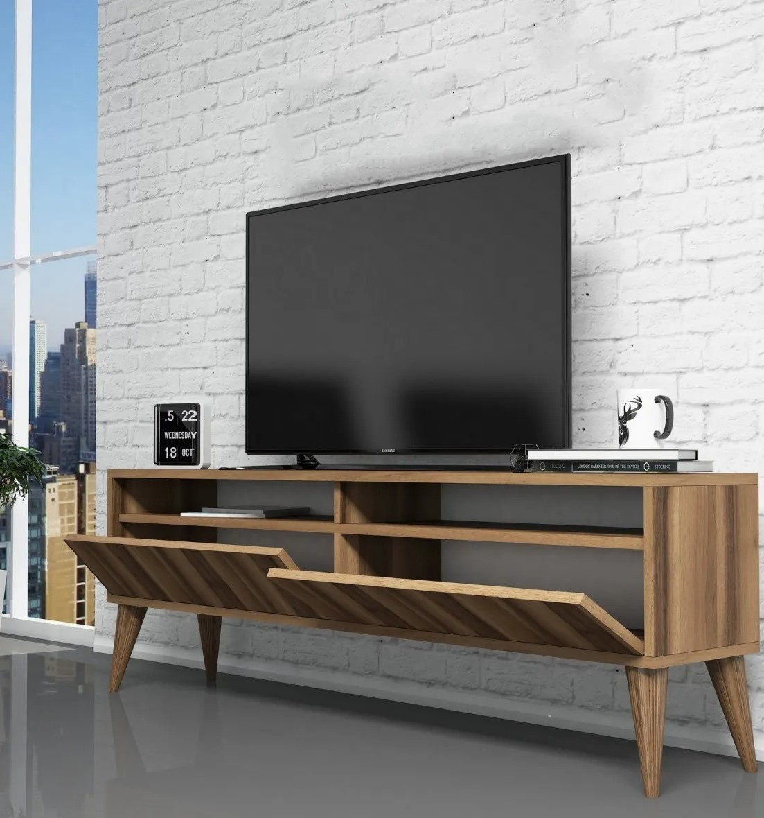 Cu design elegant și modern, această unitate TV este o adevărată capodoperă care va îmbunătăți fără efort estetica oricărei încăperi.