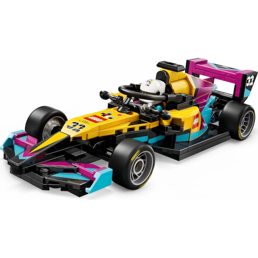 Această mașină F1 ACADEMY are cockpit, aripă spate și anvelope cu inscripția „Pirelli”. Setul include, de asemenea, o minifigurină a unei pilote F1 ACADEMY cu cască, perucă și cheie, pe care copiii o pot așeza în cockpit pentru a participa la curse de viteză.