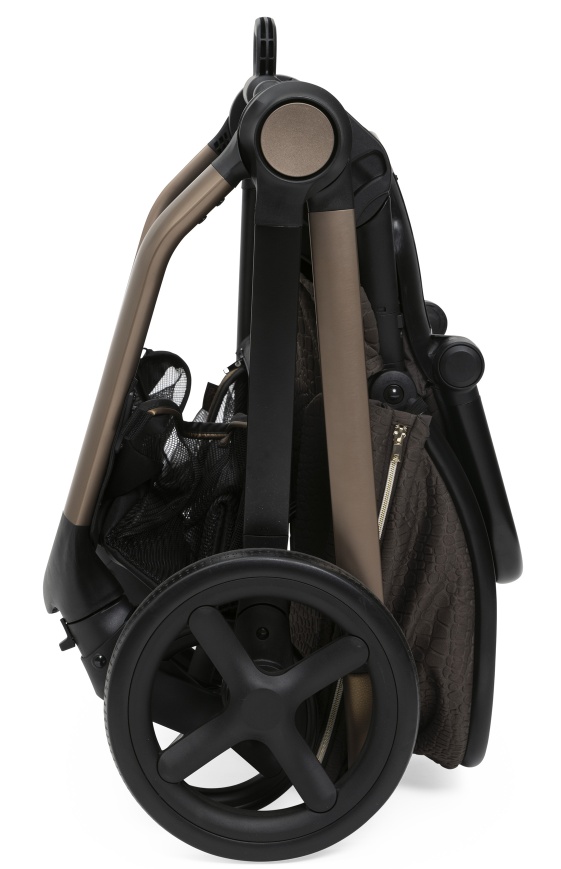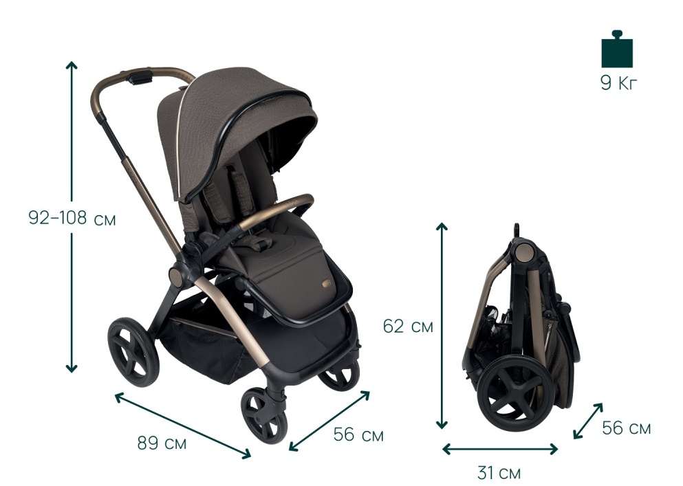 Șezutul reversibil poate fi reinstalat cu ușurință din poziția orientată spre înainte în poziția orientată spre spate. Șezut lat și confortabil, cu spătar înalt și centuri de siguranță în cinci puncte cu pernuțe moi, reglabile pe înălțime în trei poziții. Bară de protecție deschizabilă cu strat premium. Căruciorul poate fi pliat cu ușurință cu o mână împreună cu șezutul în pozițiile orientată spre înainte și spre spate. Stă în picioare fără suport atunci când este pliat, compact și ușor.
