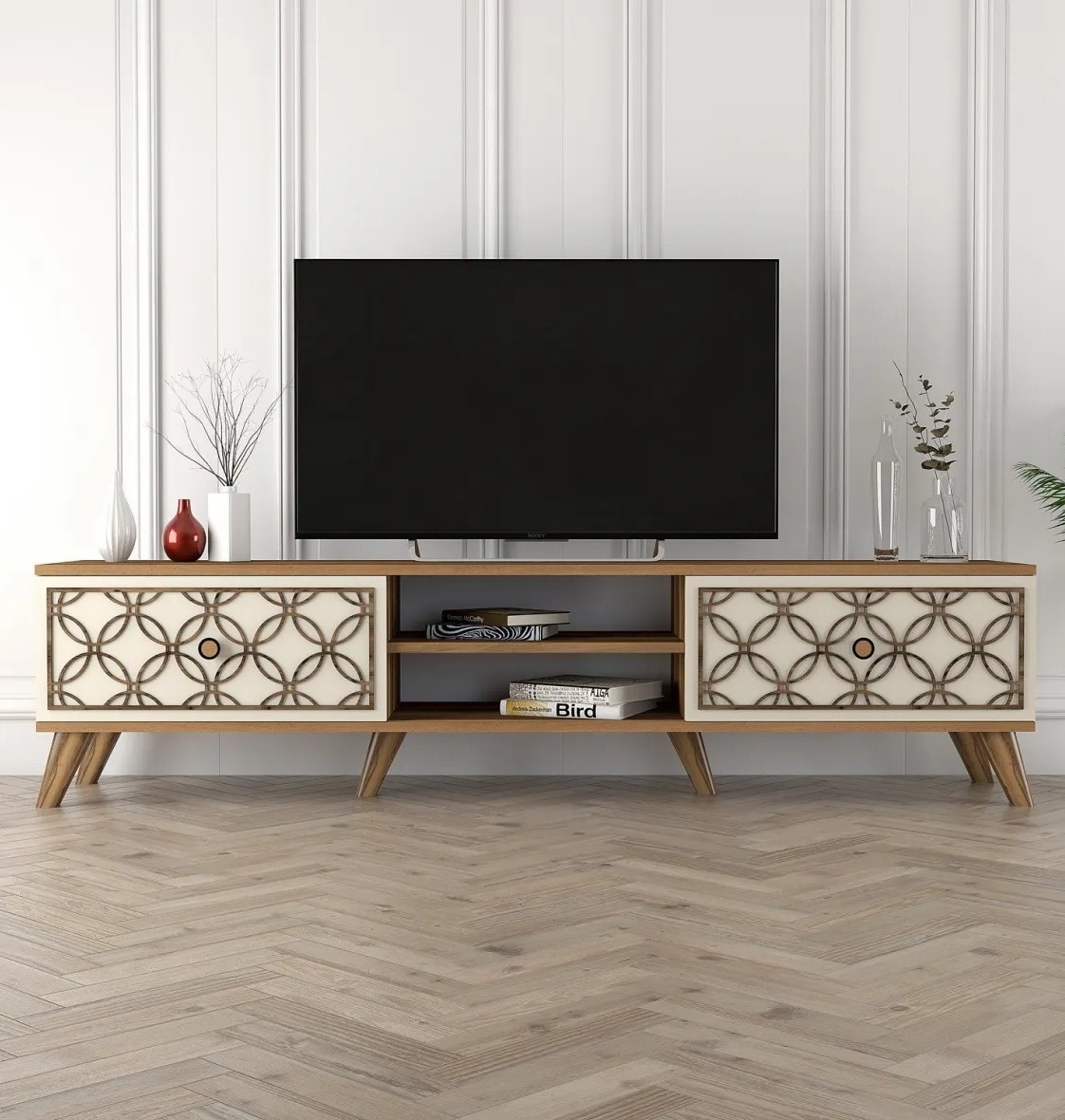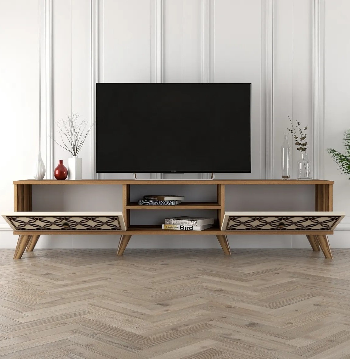 Comodă TV Trendy Clasa Walnut/Cream 180x44x35cm GTR000088