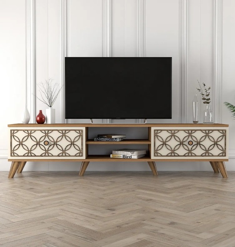 Standul TV este fabricat din panouri de particule acoperite cu 100% melamină, asigurând durabilitate și longevitate. Grosimea de 18 mm și relieful CNC de 4 mm adaugă o notă de eleganță designului, făcându-l o piesă de rezistență în orice cameră.