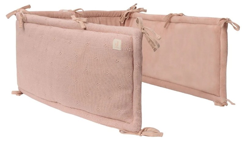 Bordul poate fi folosită pe ambele părți și are o textură tricotată în formă de flori în față, iar spatele este dintr-o țesătură moale de velur. Are 180 cm lungime si se ataseaza usor de pat sau tarc folosind cabluri pe laterale.
