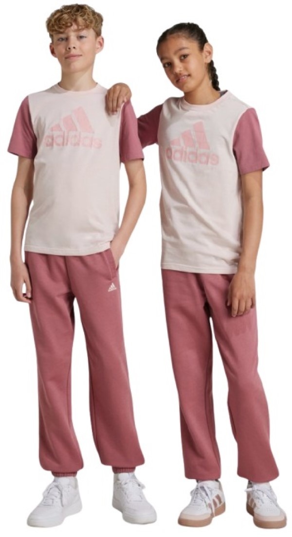 Pantaloni spotivi pentru copii Adidas J Essentials Small Logo Feel Cozy Fleece Pants Preloved Crimson, s.152