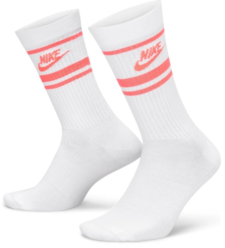 Ciorapi pentru bărbați Nike U Nsw Everyday Essential Crew 3Pr-144 Stripes White/Hot Punch, s.M