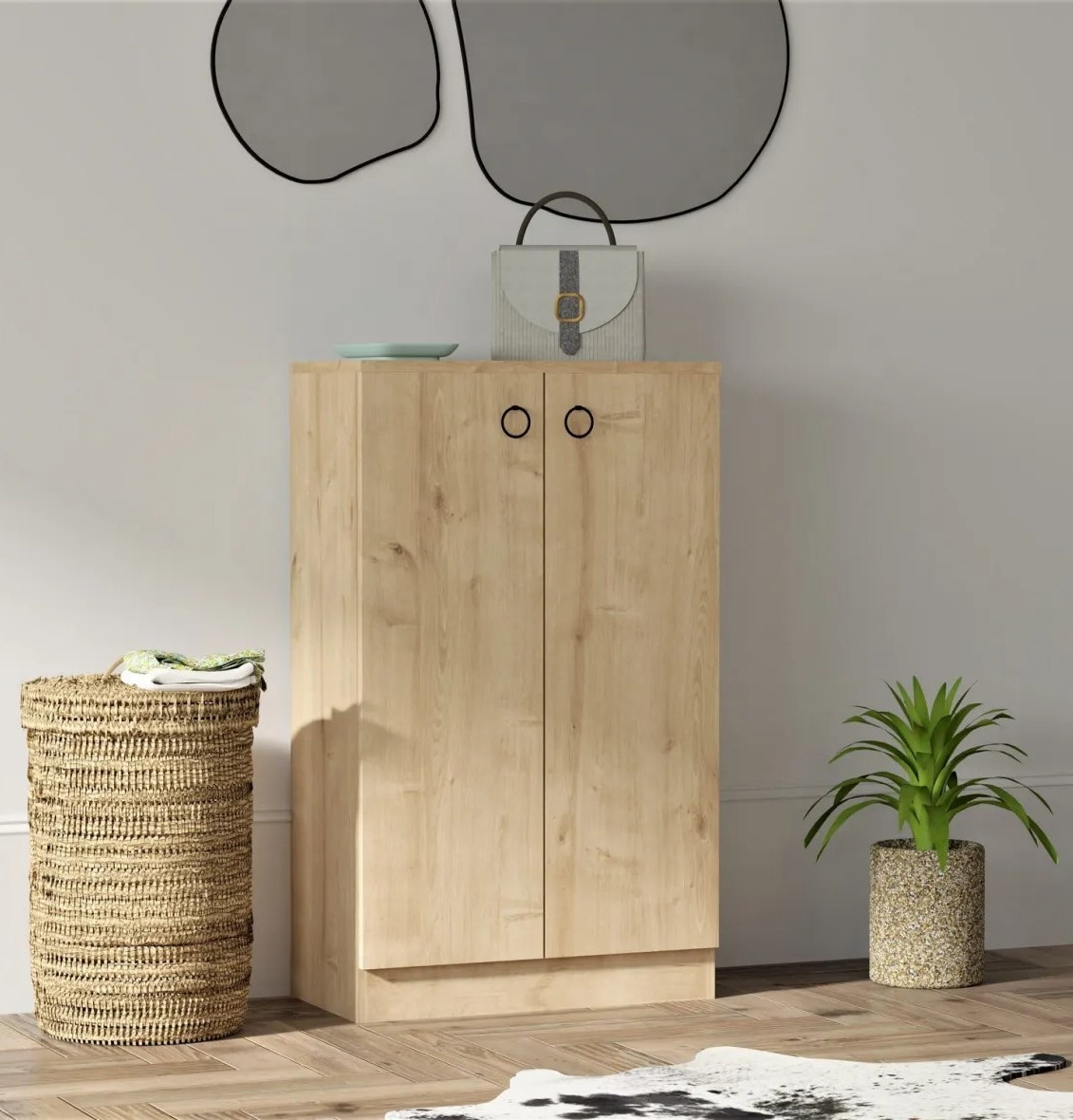 Realizată din panouri de particule de lemn 100% acoperite cu melamină, această comodă este construită pentru a rezista în timp. Grosimea de 18 mm asigură robustețe și durabilitate, transformând-o într-o investiție de încredere pentru anii următori.