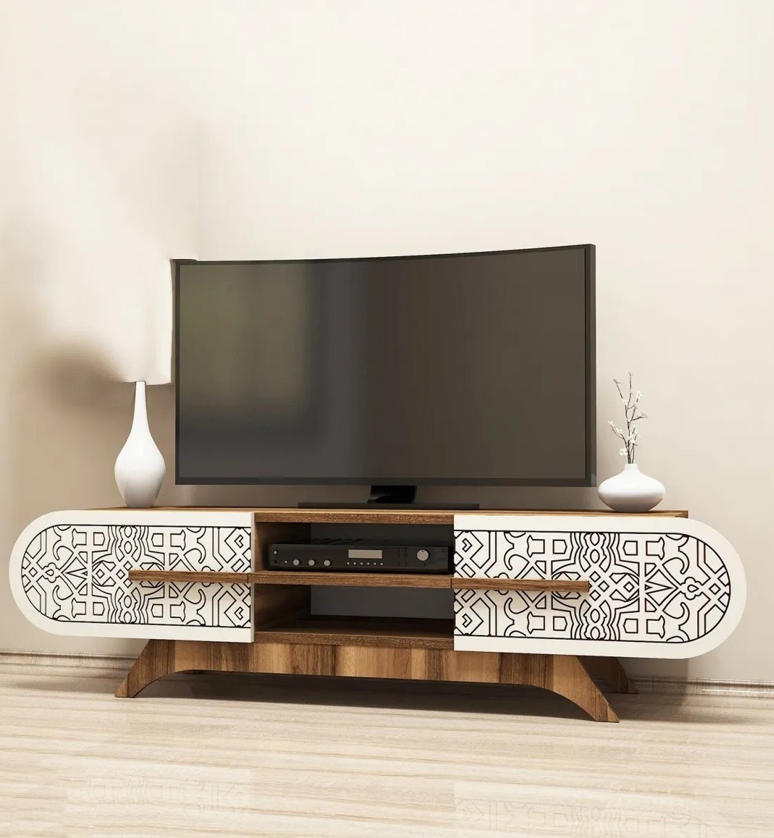Unitatea combină stilul, durabilitatea și funcționalitatea într-o singură piesă de mobilier, oferind o experiență de divertisment completă și organizare optimă.