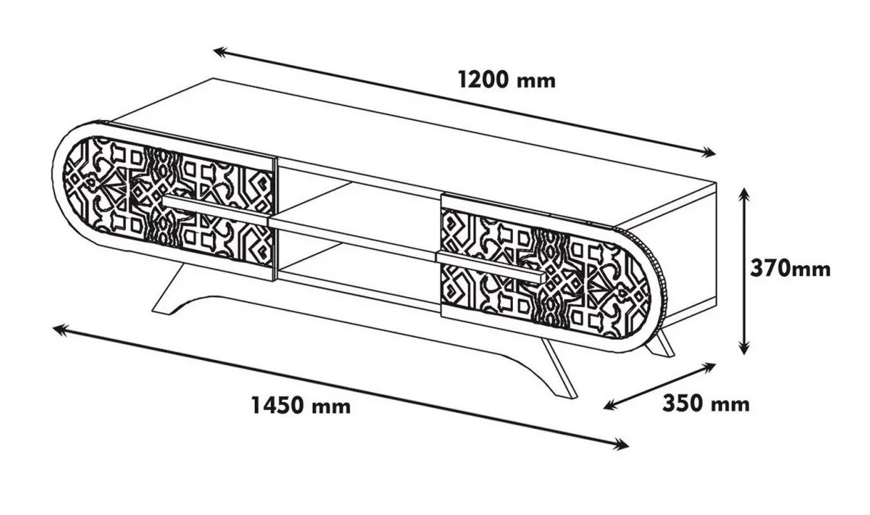 Cu dimensiuni de 145 cm lățime, 37 cm înălțime și 37 cm adâncime, unitatea oferă spațiu amplu pentru toate elementele esențiale de divertisment. Rafturile și compartimentele permit păstrarea tuturor obiectelor într-un mod ordonat și accesibil, menținând camera curată și organizată.