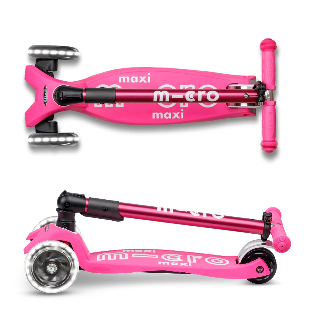 Trotinetă Micro Maxi Deluxe Foldable LED Shocking Pink (MMD096)