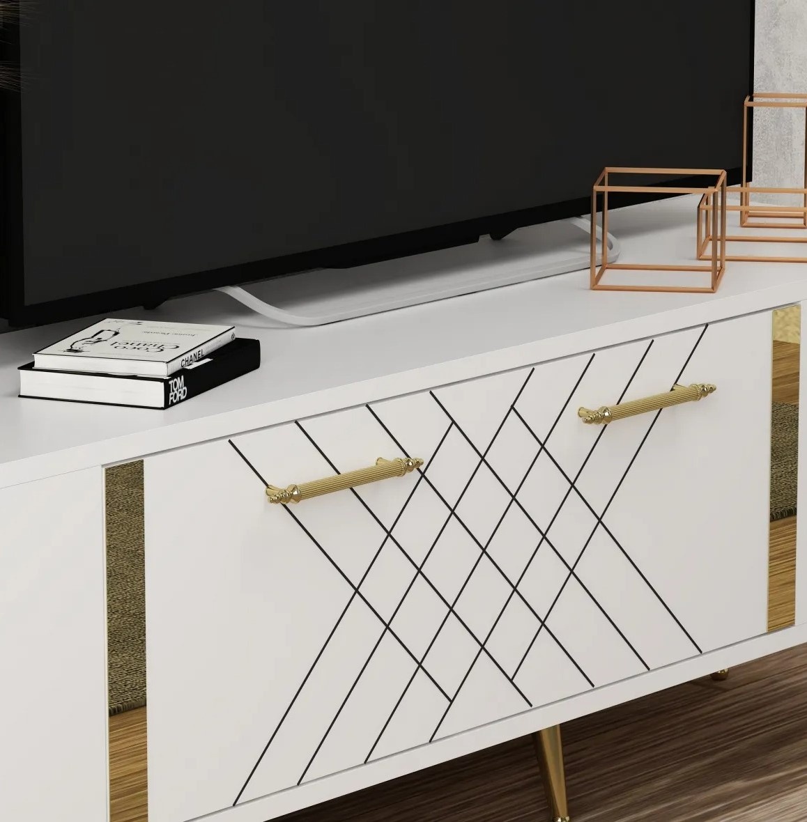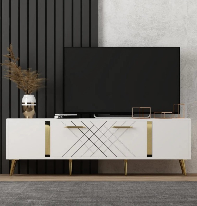 Comodă TV Trendy Detas White/Gold 150x48.2x35cm GTR006398