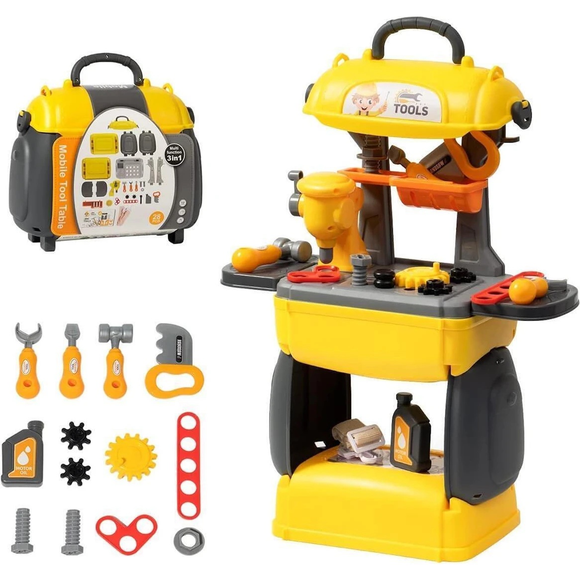 Dacă un băiețel dorește să imite tatăl în treburile casnice și vrea să devină „omul potrivit la toate”, setul de jucărie „Mica atelier” îi va ajuta părinții să sprijine această dorință. Setul de instrumente imită echipamentele adulților și include 28 de piese (cheie, ciocan, șuruburi, canistră și multe altele). Setul de joc de rol este un cadou excelent pentru orice băiat, captivând copilul, familiarizându-l cu uneltele și funcțiile lor, dezvoltând gândirea, imaginația și antrenând motricitatea fină și generală.