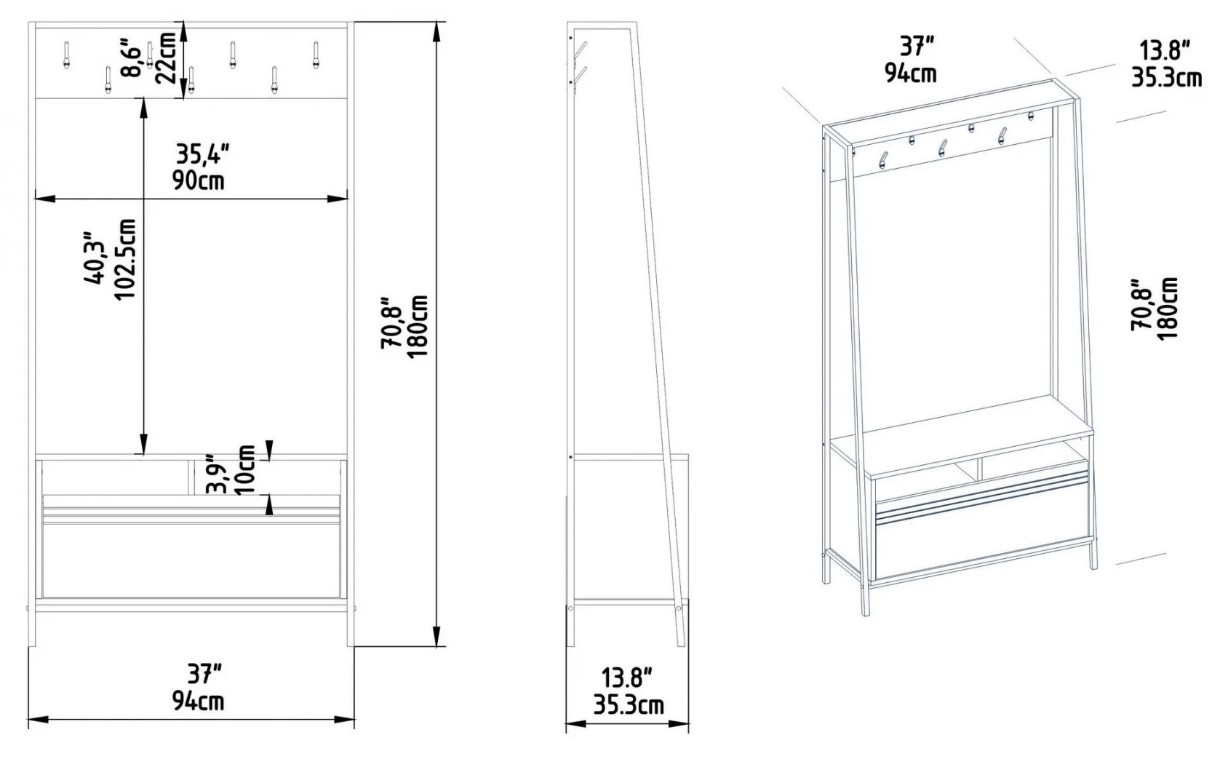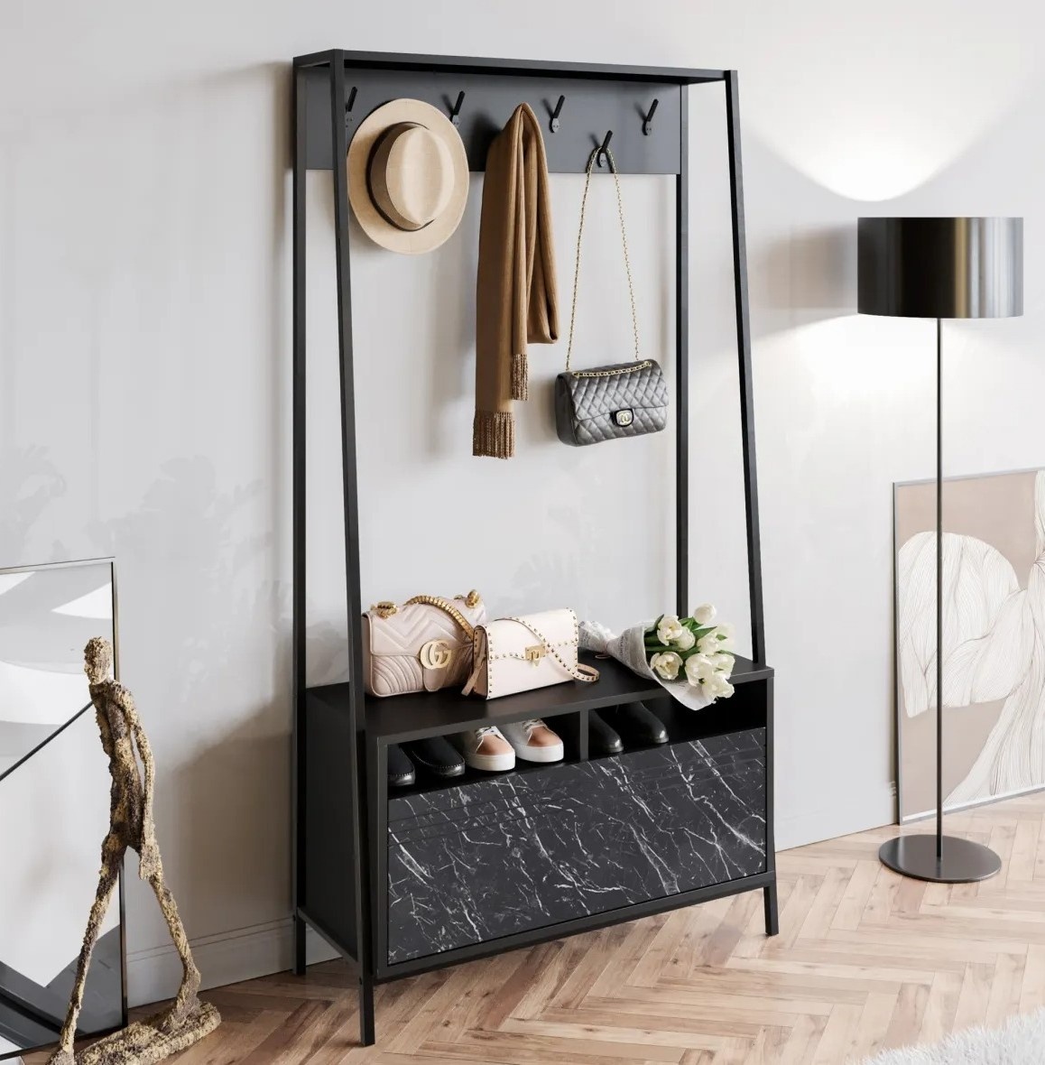 Antreu Trendy Devin Black/Marble 94x180x35cm GTR005923