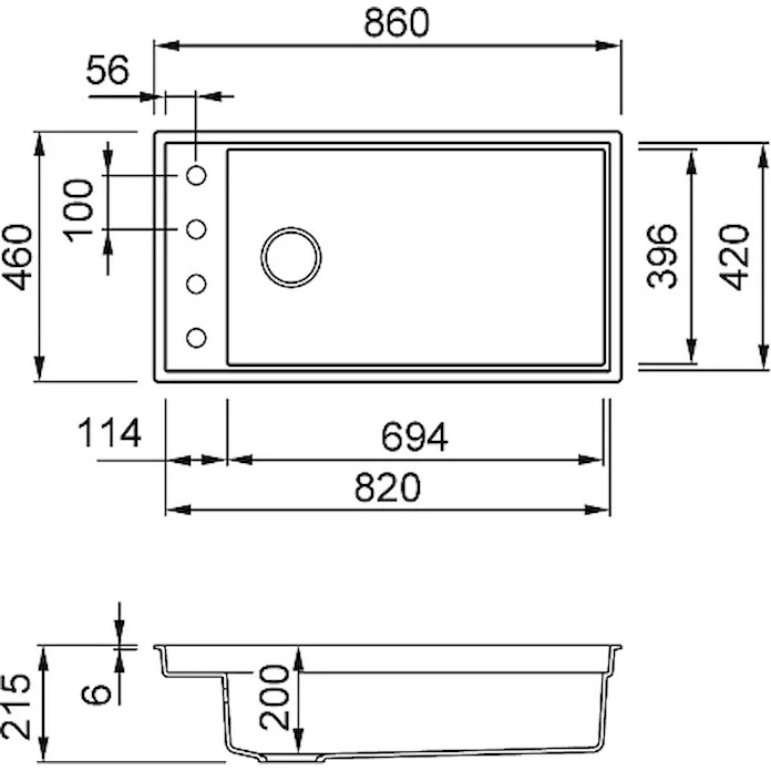 Dimensiuni cuvă694х396 mm
