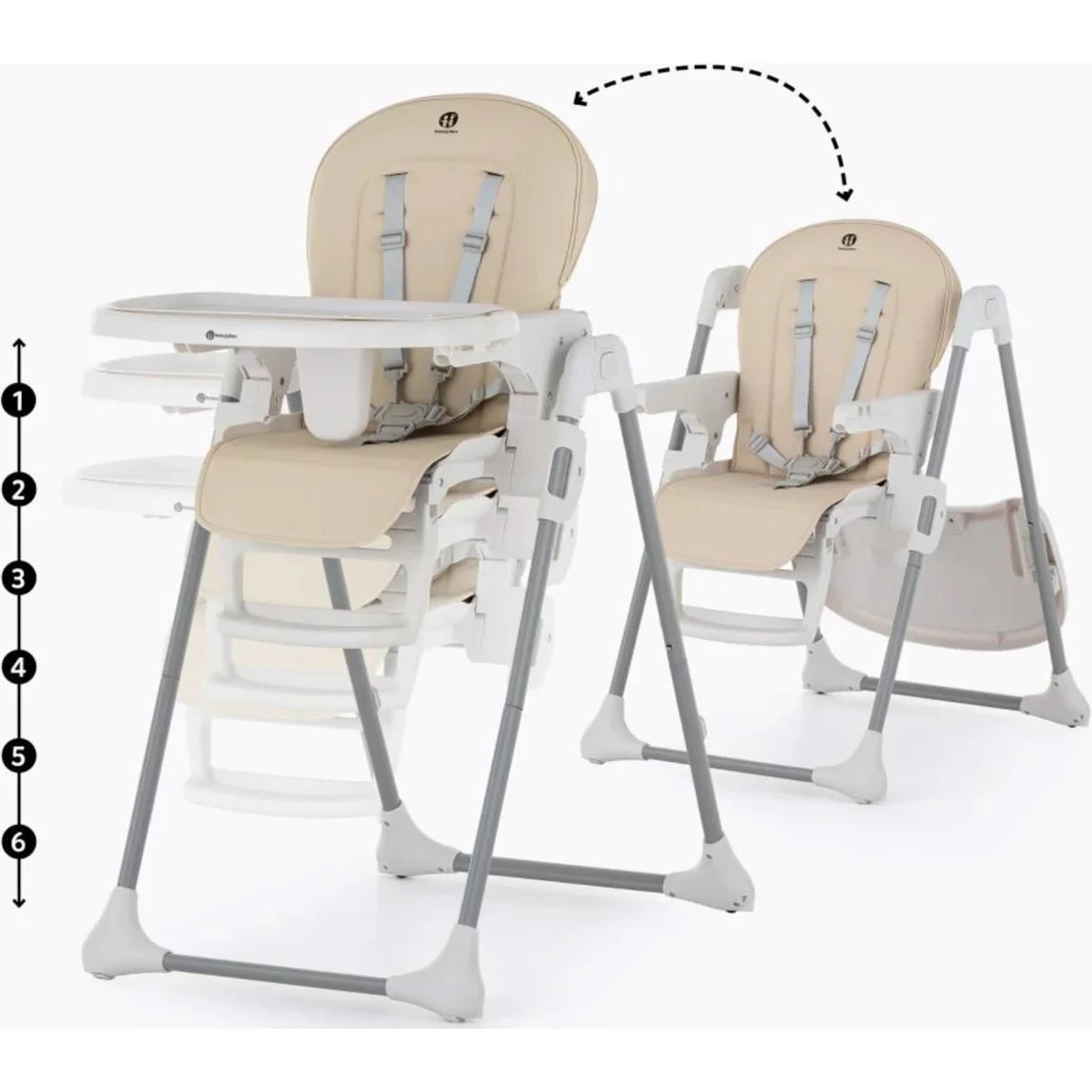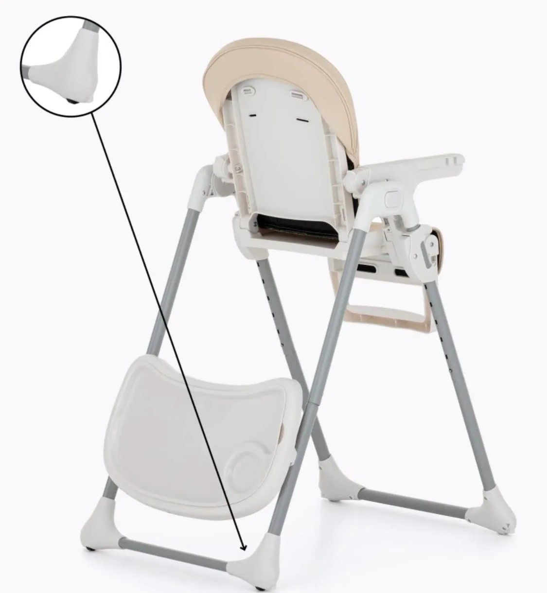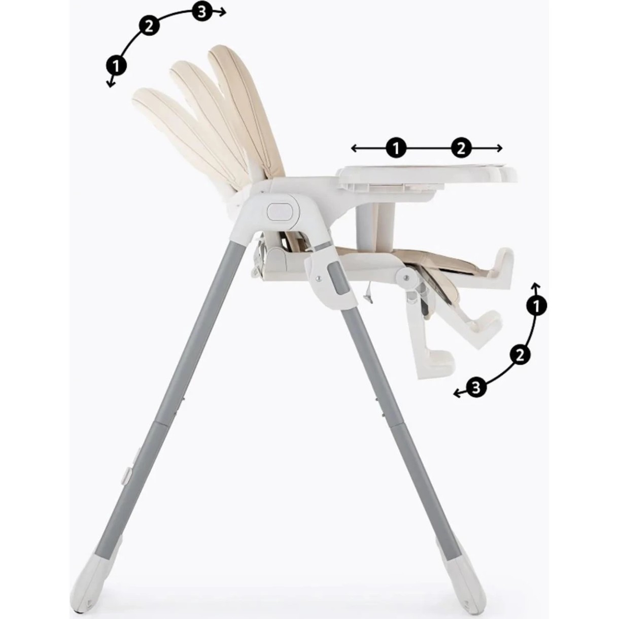 Scaunul este dotat cu toate funcțiile necesare care fac hrănirea zilnică simplă și confortabilă: se curăță și se demontează ușor, are centură de siguranță în 5 puncte, spătar reglabil, suport pentru picioare și reglaj al înălțimii, precum și o tavă dublă – partea superioară poate fi spălată în mașina de spălat vase.