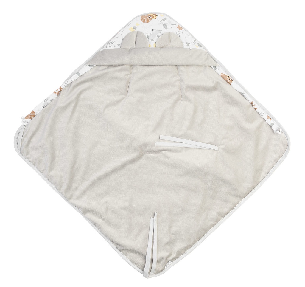 Paturica pentru cosul de auto a fost conceputa pentru cei mai mici copii. Este confortabila, calduroasa si foarte practica. Datorita celor 3 gauri pentru centurile de siguranta, nu este nevoie sa desfaceti centurile pentru a dezveli copilul in cos. Are o gluga cu urechi dragute, care pot fi reglate cu o banda. Este umpluta cu o insertie antialergica. In interior exista o tesatura delicata de catifea.