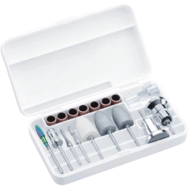 Include nouă capete de înaltă calitate din safir, pâslă și aliaj dur, adaptate diferitelor nevoi