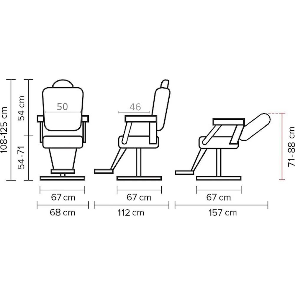 - înălțime / lățime / adâncime șezut: 54–71 / 50 / 46 cm