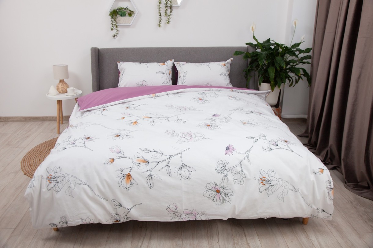 Setul de lenjerie de pat rafinat "Soft Dreams" este fabricat dintr-un material natural din bumbac - ranforce. Această ţesătură are proprietăţi de reglare a temperaturii, permite bunei circulaţii a aerului și absoarbe excesul de umiditate. Este o ţesătură durabilă, densă, rezistentă la spălare și călcare, nu se cutează și își menţine desenul pentru o perioadă îndelungată. Caracteristica principală a ranforce-ului este densitatea sa - mai mare decât cea a bumbacului satinat. Totuşi, în general, ranforce-ul este o ţesătură mai subţire, mai moale și plăcută la atingere. Datorită structurii sale de ţesătură, acest set de lenjerie de pat rezistă mult timp și arată excelent. În producţia materialului se utilizează coloranţi siguri și ecologici, care permit menţinerea strălucirii și clarităţii desenului chiar și după mai multe spălări.
