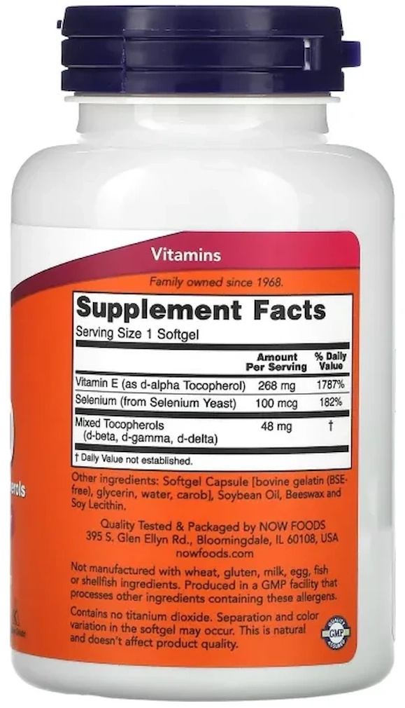 Vitamine NOW E-400 Mixed Tocopherols & Selenium 100cap