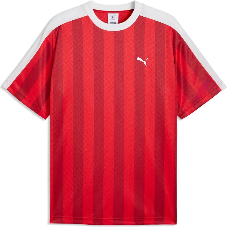 Designul în dungi și inserțiile emblematice T7 de-a lungul umerilor și mânecilor subliniază caracterul sportiv al modelului, iar logo-ul brodat PUMA Cat adaugă un accent discret de brand. Modelul este realizat din 100% poliester reciclat, susținând un proces de producție mai responsabil.