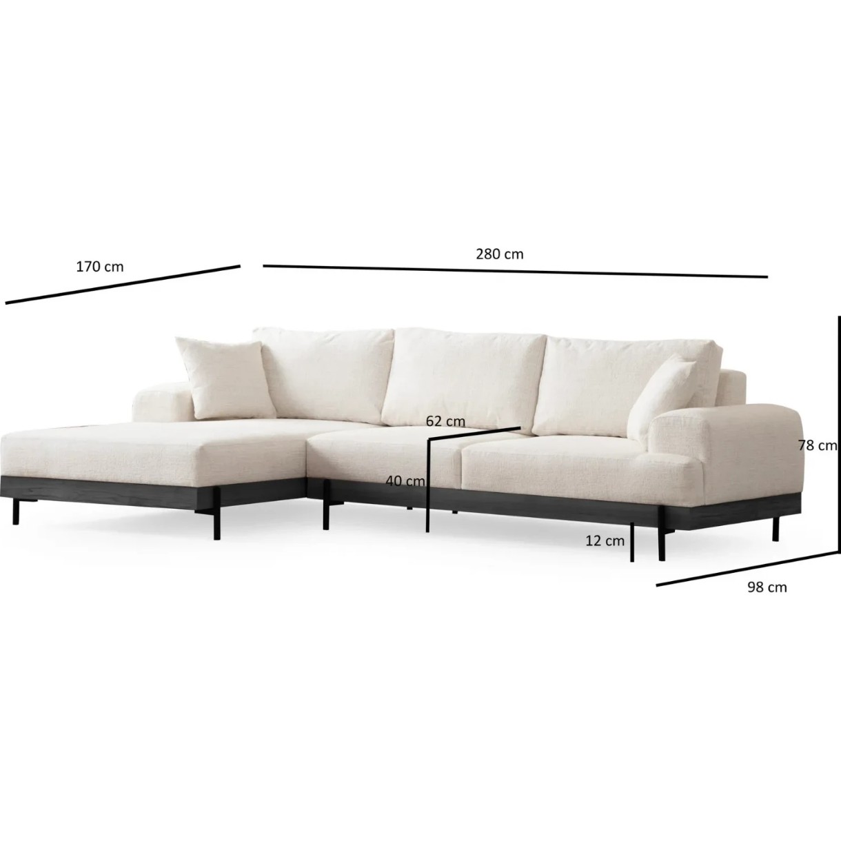 Canapea de colț Trendy Eti White/Black L 280x170x78cm GTR003493