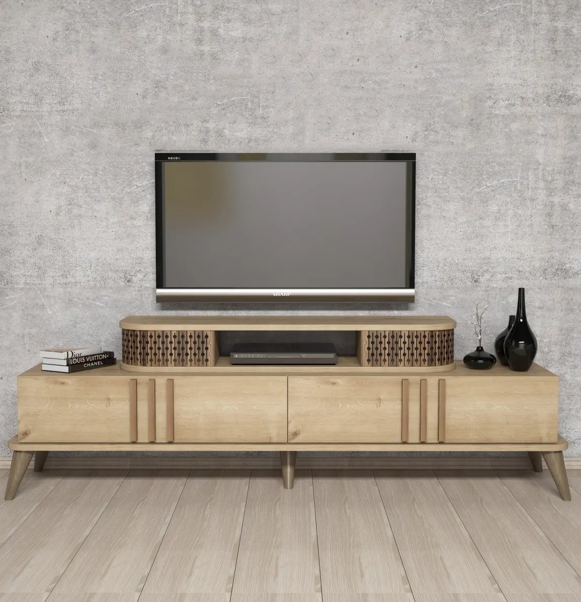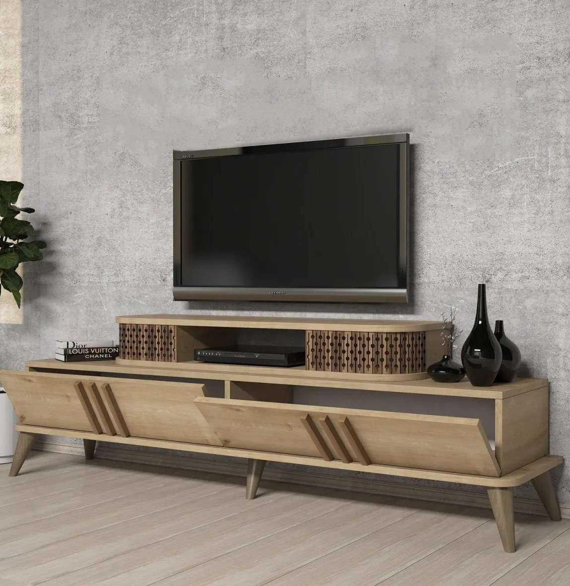 Această unitate TV se integrează cu ușurință într-o gamă variată de stiluri interioare, de la modern la tradițional. Poate deveni un element de accent al camerei, punând în valoare decorul și contribuind la o atmosferă caldă și primitoare.
