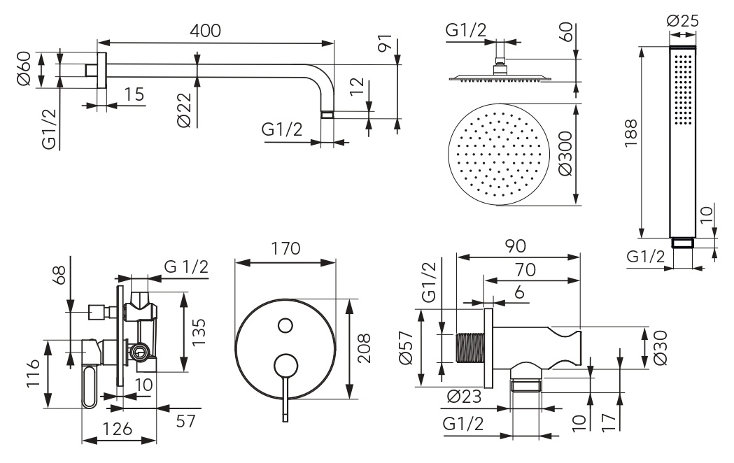 Set pentru duș F-Design Zapffiro Gold FD1-ZFR-7PSET1-55